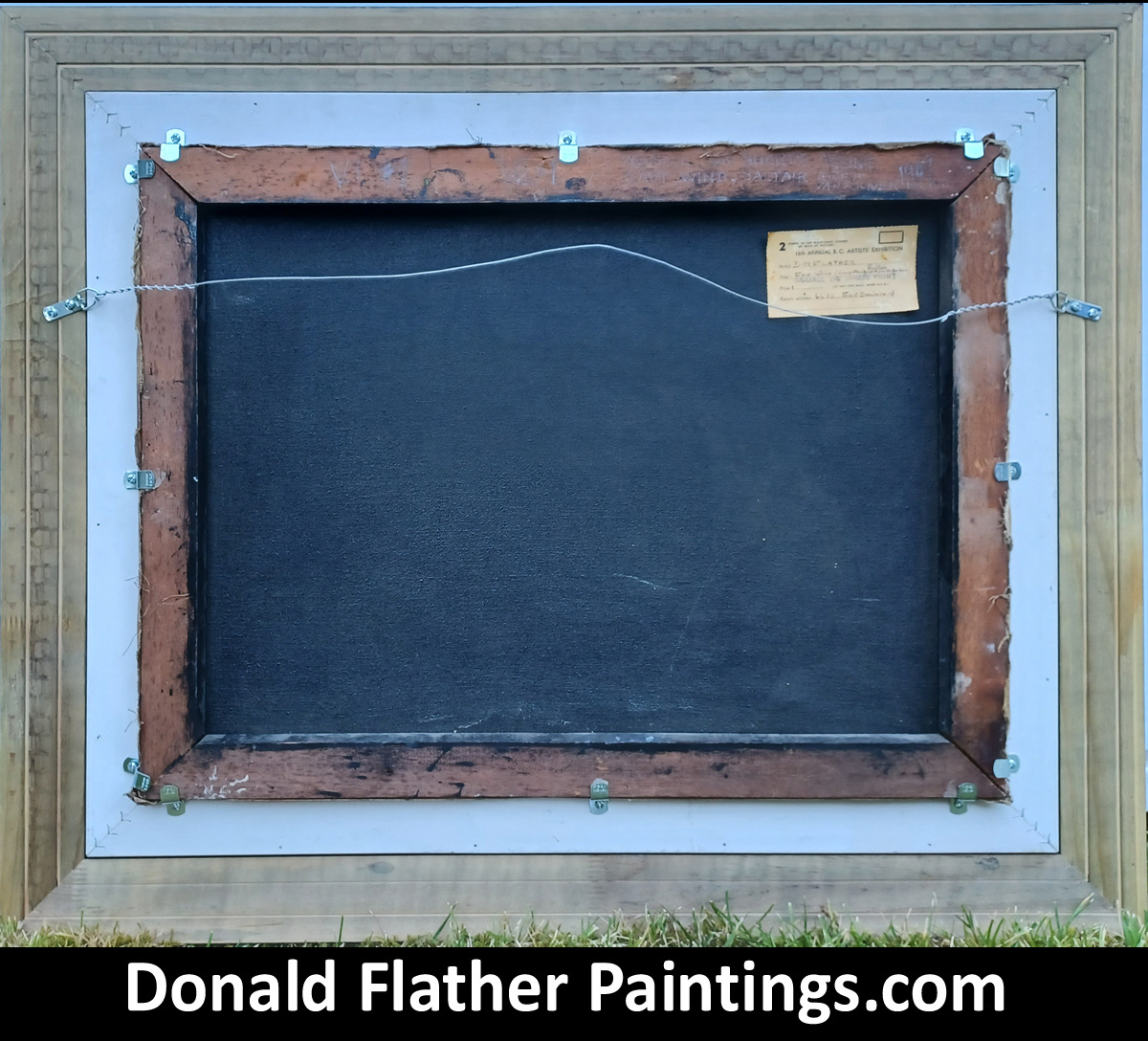 Click here to see Dr. DM Flather's original oil painting titled 'Eastwind Saltair' Squall on Sharpe Point seascape painting's framed rear view